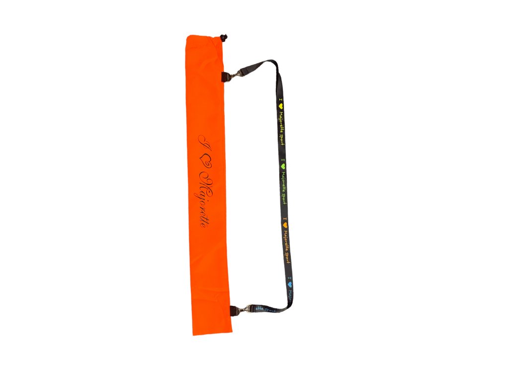 Obal na hůlku vyrobený z pevného oranžového materiálu neonové barvy. Obal je určen pro 1 - 2 hůlky. Obal je opatřen dlouhým popruhem pro nošení přes rameno. Popruh je černý s mažoretkovými motivy. Potisk je proveden stříbrnou blýskavou barvou. Obal je možné dále potisknout jménem mažoretky nebo názvem klubu. Možnost výběru barvy popruhu standartně je dodáván popruh černý, ale je možné jej vyměnit za růžový.